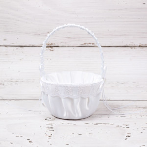 Cu ocazia botezului, alege un cosulet de cruciulite cu dantela, lucrat manual din tafta fina si decorat cu panglici satinate si floricele din margele.