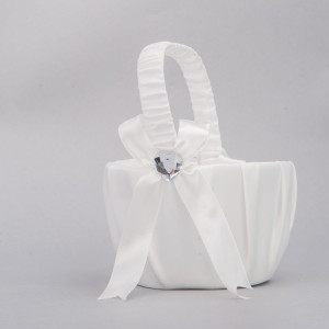 Cosulet cruciulite botez realizat din tafta fina si decorat cu fundite si inimioare in partile laterale. Acest accesoriu de botez elegant este folosit in biserica pentru transportul cruciulitelor.