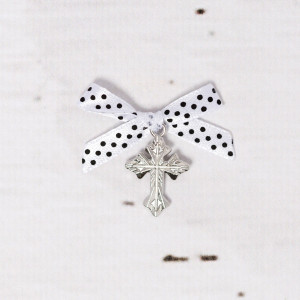 Pentru apropiatul botez al finului/finutei tale, in calitate de nasa poti alege cruciulite botez argintii cu fundita alba si buline negre, ca simbol al oricarui crestin.