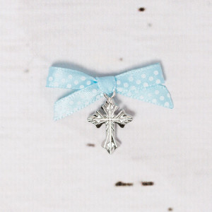 Cruciulitele de botez cu fundita bleu si buline albe realizate din metal de culoare argintie sunt potrivite pentru botezul unui baietel. Aceste mici obiecte religioase se ofera la biserica, inainte de slujba propriu-zisa de botez.