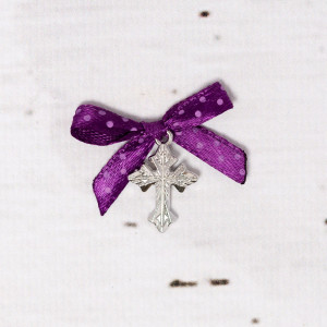 Cruciulite botez biserica cu fundita mov si buline albe