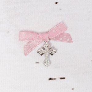 Cruciulitele botez cu fundita roz cu buline albe din metal argintiu inoxidabil sunt acele cadouri religioase pe care nasii unei fetite le pot oferi in biserica celor care participa la slujba religioasa.
