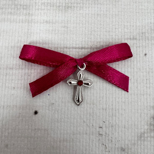Cruciulitele botez de mici dimensiuni cu pietricica in mijloc si asortate cu fundita roz fucsia vor fi mereu o alege inspirata pentru botezul unei fetite.