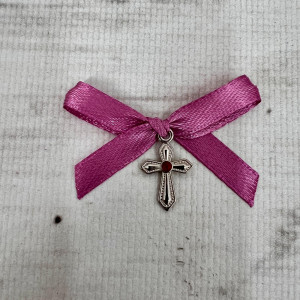 Deoarece culorile pastel sunt mereu in tendinte mai ales primavara, daca esti nasa unei fetite delicate, alege pentru botezul micutei cruciulite botez cu pietricica rosie si fundita roz prafuit.