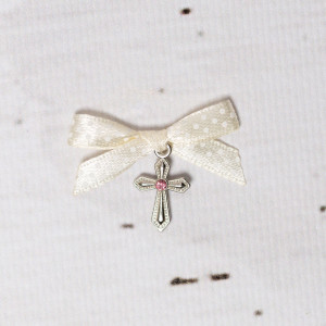 Cruciulitele botez cu pietricica roz si fundita ivory cu buline sunt niste accesorii religioase ideale pentru un eveniment solemn, cum este botezul unui bebelus.