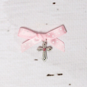Deoarece culorile calde sunt mereu in tendinte mai ales primavara, daca esti nasa unei fetite delicate, alege pentru botezul micutei cruciulite botez cu pietricica roz si fundita roz cu buline vesele.