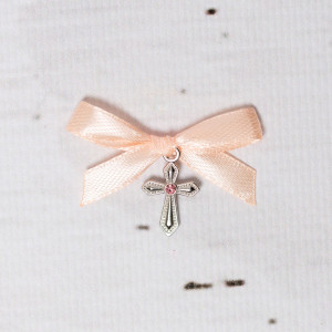 Comanda acum produsul "Cruciulite botez cu pietricica roz si fundita somon".