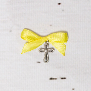 Cruciulitele botez cu pietricica transparenta si fundita galbena sunt niste accesorii religioase folosite la slujba de crestinare a unui bebelus. Conform traditiei, nasa de botez este cea care cumpara si ofera invitatilor micile cadouri religioase.