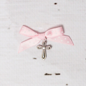 Cruciulitele de botez sunt acele simboluri religioase pe care nasii le cumpara si le ofera invitatilor care iau parte la slujba religioasa. Cruciulitele metalice cu pietricica transparenta si fundita roz cu buline sunt ideale pentru botezul unei fetite.