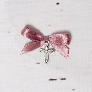 Nasa de botez a unei fetite care vrea sa aleaga pentru invitati cruciulite botez metalice cu pietricica transparenta si fundita roz prafuit pot opta pentru aceste obiecte religioase de mici dimensiuni, ca alternativa la cruciulitele de argint.