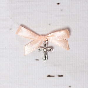 Cruciulitele reprezinta o marturisire de credinta in Iisus Hristos si in mantuire. Culoarea discreta a funditei se poate regasi in decorul altor piese de botez, cum ar fi lumanarea sau trusoul bebelusului.