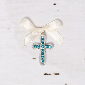 Cruciulitele botez cu strassuri bleu si fundita ivory sunt potrivite in special pentru botezul unui baietel, dar nu este o alegere nepotrivita nici daca sunt oferite la botezul unei fetite de catre nasa copilului.