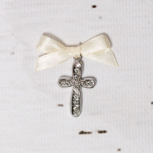 Cruciulitele cu strassuri transparente si fundita ivory sunt un fel de marturii religioase, in culori neutre, care pot fi purtate la biserica, in timpul ceremoniei de botez.