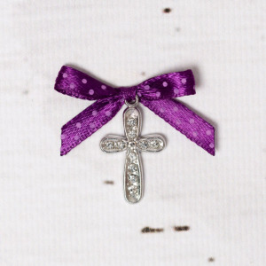 Comanda acum produsul "Cruciulite botez cu strassuri transparente si fundita mov cu buline".