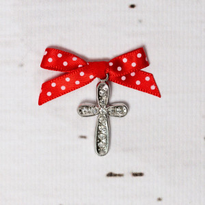 Acest simbol crestin aminteste de jertfa pe cruce a lui Iisus si semnifica credinta crestinilor in mantuire. Nasa unei fetite poate alege cruciulite cu strassuri transparente si fundita rosie cu buline.