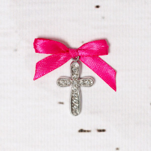 Cruciulitele sunt realizate din crom nichelat si nu oxideaza. Acest model cu fundita roz fucsia este ideal pentru botezul unei fetite. Dupa botez, invitatii pot pastra micile cadouri religioase in semn de amintire.