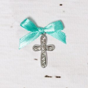 Cruciulitele se prind in piept cu ajutorul unor ace de botez. Acestea se poarta la biserica in timpul slujbei de botez. Cruciulitele sunt realizate din metal nichelat argintiu si au pietricele transparente. Fundita verde menta le confera mai multa eleganta.