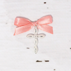 Cruciulitele cu model ondulat sunt perfecte pentru evenimentele in stil clasic, iar culoarea piersica este perfecta pentru botezul unei fetite.