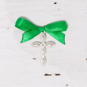 Daca verdele este culoarea ta preferata, atunci cand participi la botezul finutului tau in calitate de nasa, le poti oferi invitatilor prezenti la eveniment, cruciulite lacrima botez cu fundita verde.