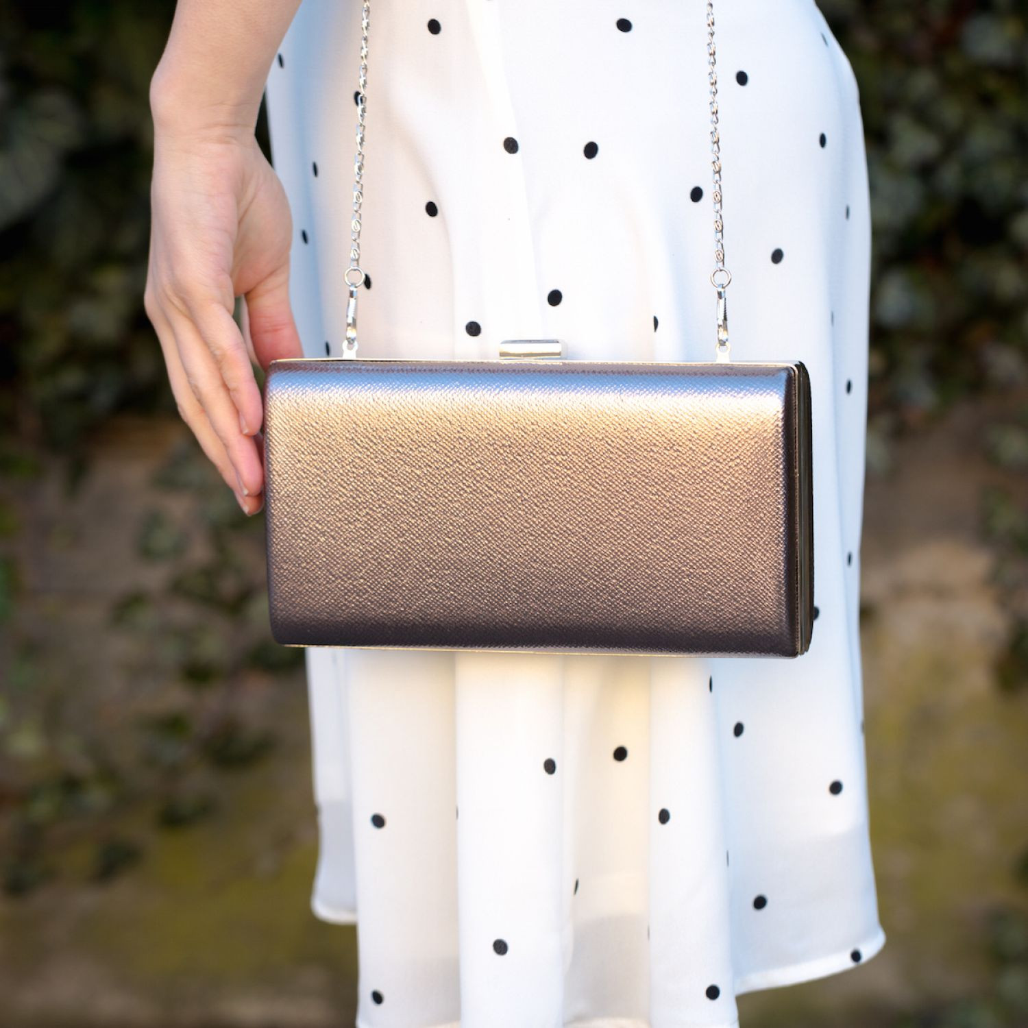 Clutch-ul de ocazie champagne este printre cele mai ravnite accesorii ale momentului.