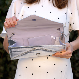 Plicul argintiu din piele ecologica este accesoriul must have pentru evenimentele importante.
