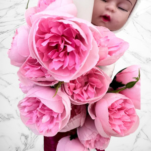 Aceste lumanari sunt decorate cu grija cu banda asortata si bujori mici de culoare roz.