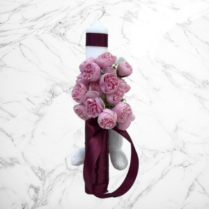 Aceste lumanari sunt decorate cu grija cu banda asortata si bujori mici de culoare roz pudra.