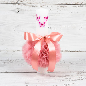 Lumanarea botez cu decor roz pudra si trei fluturasi pictati este accesoriul ideal pentru momentul crestinarii unei fetite dragalase. Desi lumanarea poate fi folosita in orice sezon, primavara este anotimpul in care se folosesc culorile pastel, iar fluturii care simbolizeaza Renasterea sunt primele gaze care ne aduc in suflete primavara.