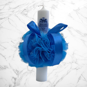✨ Oferă un plus de rafinament și emoție ceremoniei de botez cu această lumânare elegantă, decorată cu tulle fin și inscripționată cu mesajul "Să ai o viață binecuvântată, cu drag nașii!". Această lumânare specială marchează un moment unic și va rămâne o amintire prețioasă pentru întreaga familie.
