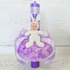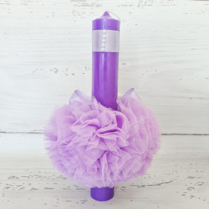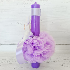 Comanda acum produsul "Lumanare mov botez decor tulle si bebelus".