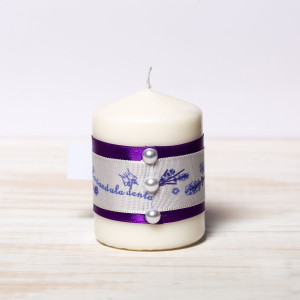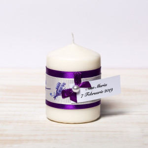 Transforma primul eveniment important al fetitei tale intr-unul de neuitat pentru toti cei prezenti si ofera invitatilor marturii botez lumanari decorate cu banda si fundita mov cu model lavanda.