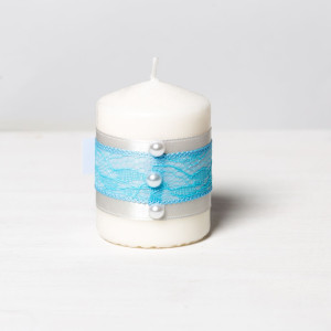 Pentru un botez care are in centru obiecte decorative in alb (puritate) si bleu (seninatate), lumanarile decorate festiv cu banda din satin argintiu, dantela si fundita bleu cu perlute asortate sunt perfecte pentru botezul unui baiat.