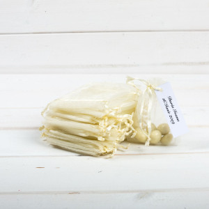 Saculetii ivory din organza sunt niste marturii de botez perfecte de oferit la orice petrecere, fie ca sarbatoritul este un baiat sau o fetita.