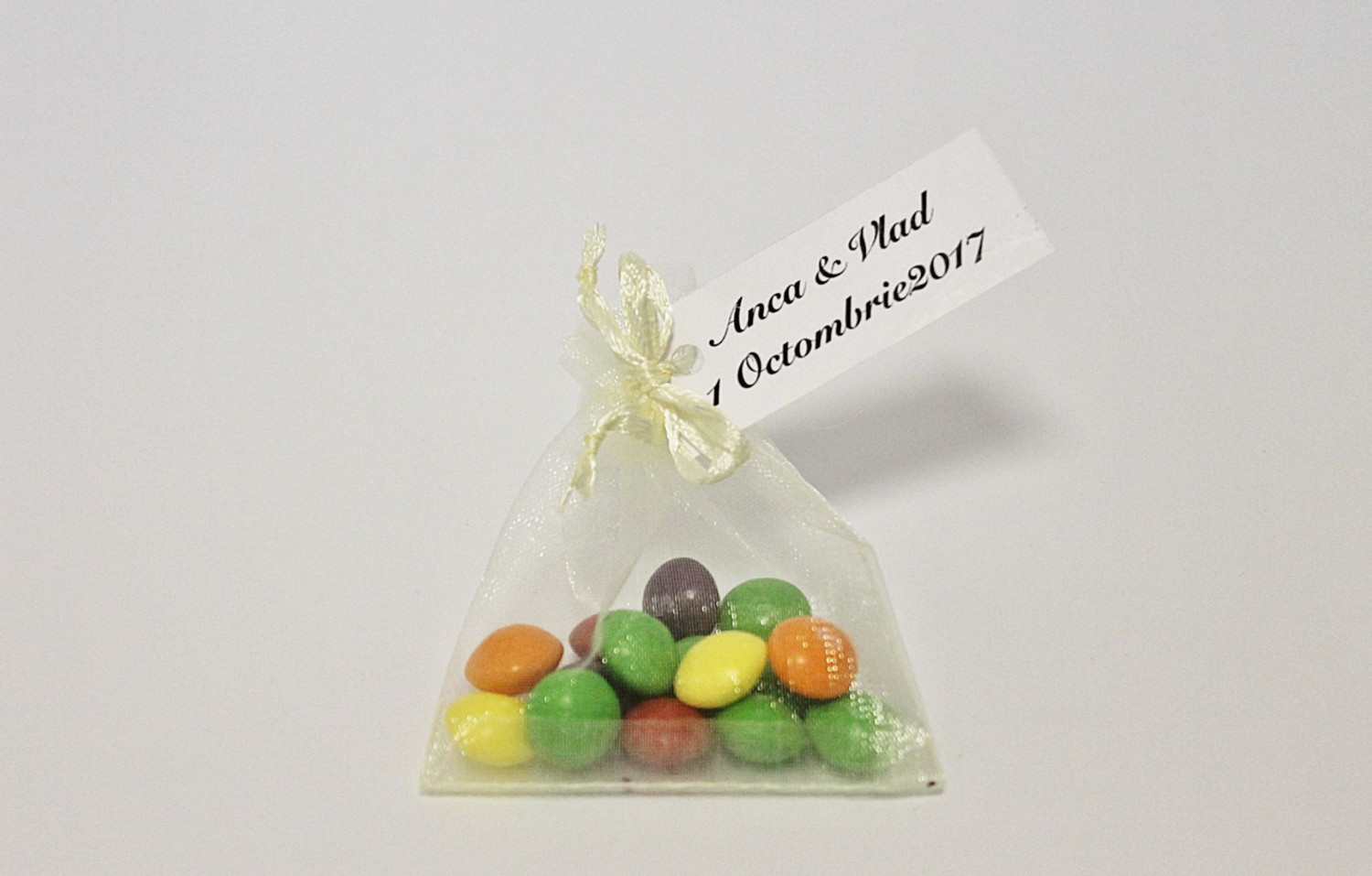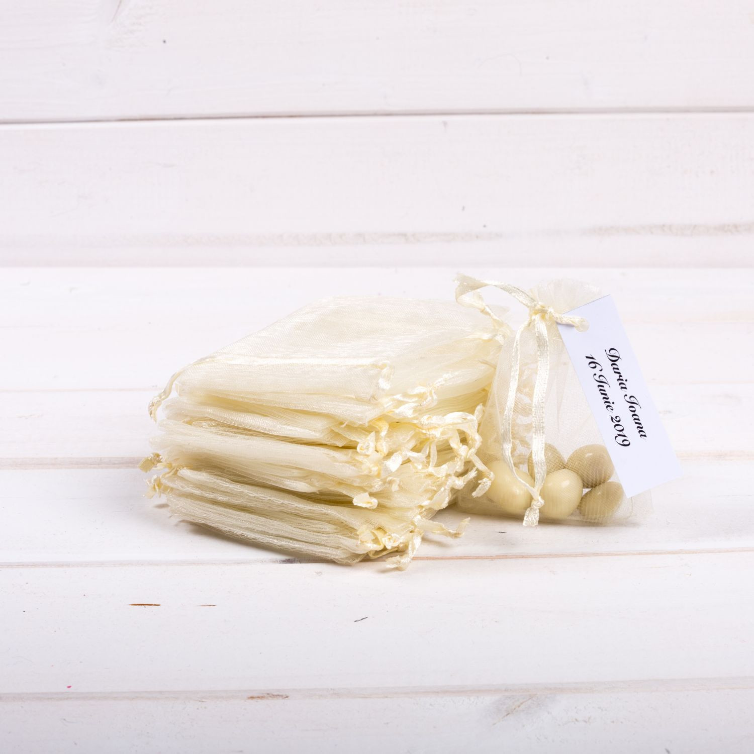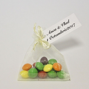 Saculetii ivory din organza, cu snur in capat sunt niste marturii botez care se ofera invitatilor prezenti la restaurant umpluti cu bomboane colorate sau cu alte mici accesorii (botosei, iconite etc).