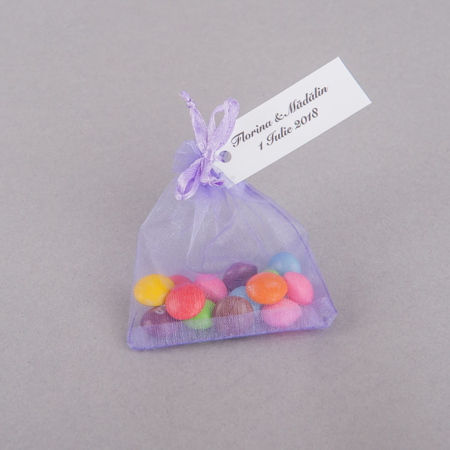 Pentru petrecerea de botez a fetitei tale, alege marturii saculeti de culoarea lavandei, mai ales daca in decorul evenimentului predomina culoarea mov deschis.