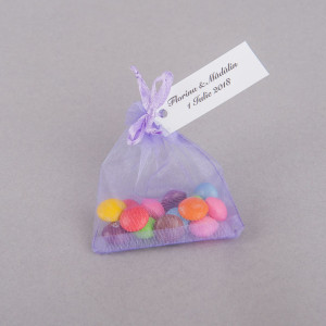 Saculetii din organza se umple cu bomboane colorate sau alte tratatii dulci si se ofera invitatilor in semn de multumire pentru prezenta lor la eveniment. Saculetii se leaga la capat cu un snur.