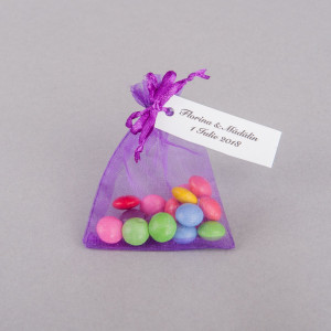 Saculetii mov din organza se leaga la capat cu snur asortat. Acestia se aseaza pe mesele invitatilor la restaurant si pot fi oferiti inca de la inceputul petrecerii, in semn de recunostinta pentru prezenta lor la eveniment.