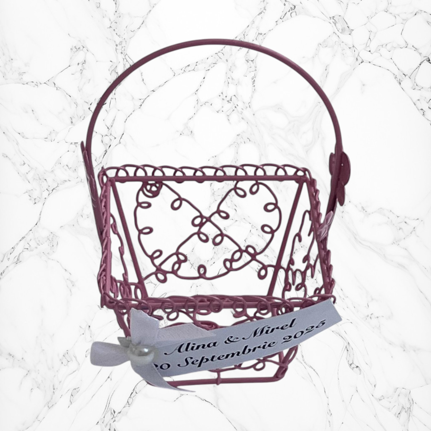 ✔️ Design delicat în formă de coșuleț, realizat din sârmă albă de calitate.