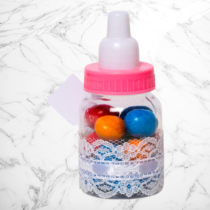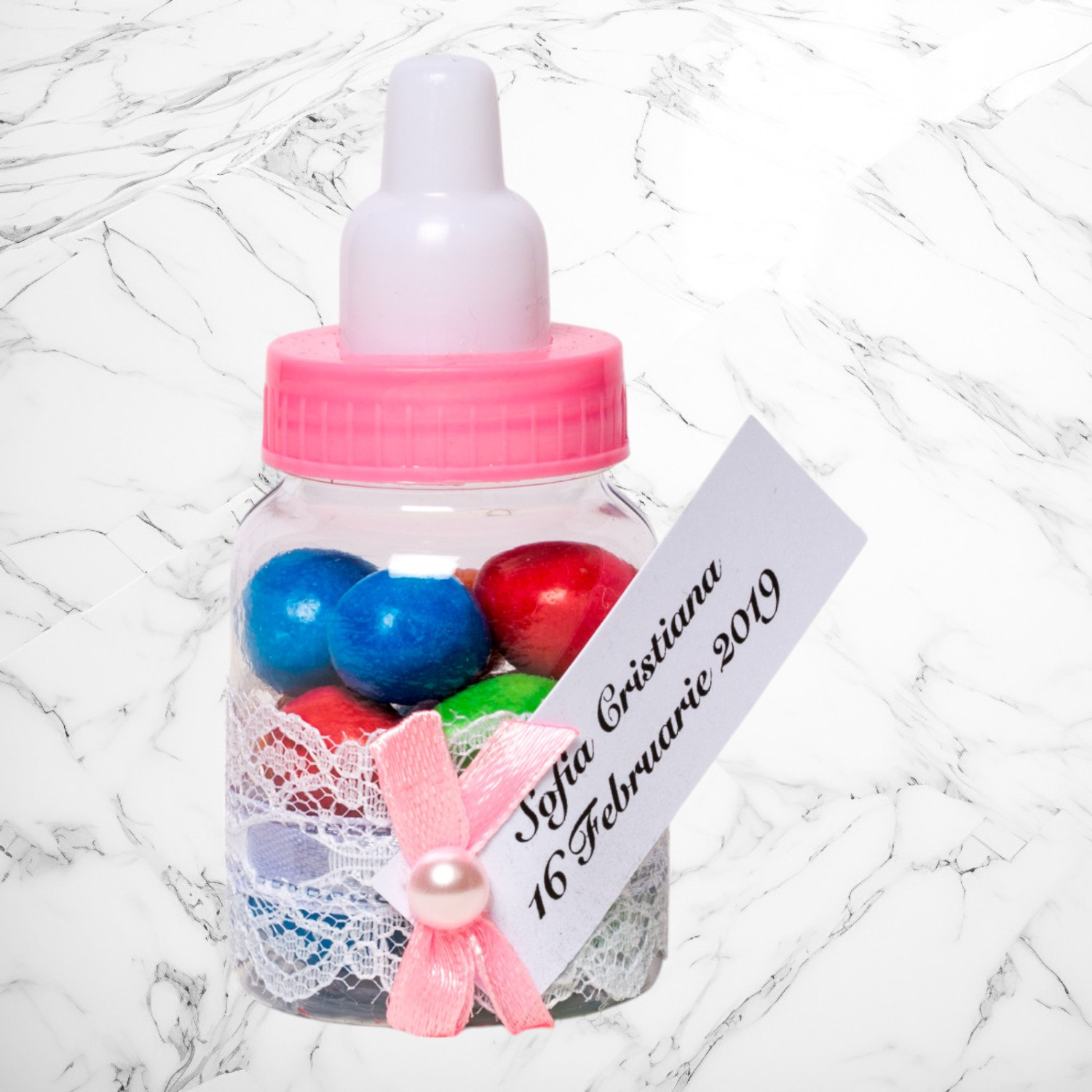 Comanda acum produsul "Marturii biberoane roz dantela alba cu model si fundita roz".
