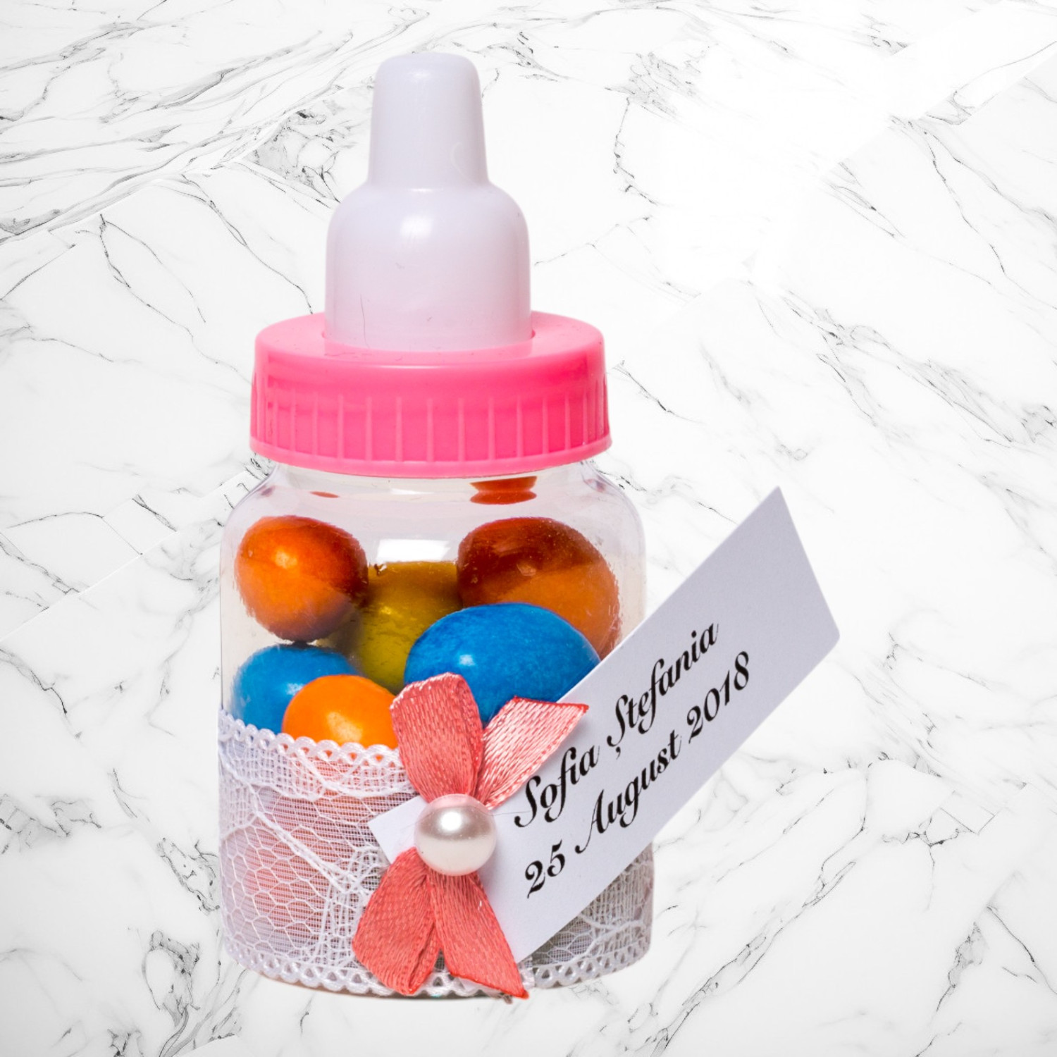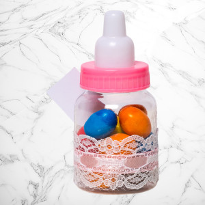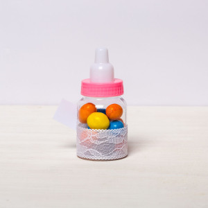 Comanda acum produsul "Marturii botez biberoane roz cu dantela alba si fundita roz prafuit".