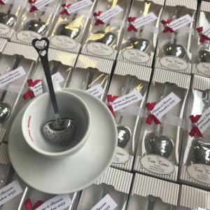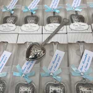 Marturiile de botez infuzor de ceai inima sunt ambalate in cutiute cadou, ca in imagine. Marturiile se pot personaliza cu numele bebelusului si data evenimentului, precum si cu fundita in culoarea dorita.