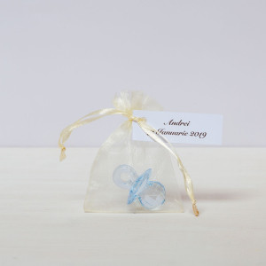 Suzetele sunt nelipsite din viata unui sugar si reprezinta o amintire draguta de la prima petrecere importanta din viata oricarui baietel. Marturiile se ofera in saculeti de organza, cu eticheta atasata.