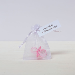 Suzetele sunt nelipsite din viata unui sugar si reprezinta o amintire draguta de la prima petrecere importanta din viata unei fetite dragalase. Marturiile se ofera in saculeti de organza, cu eticheta atasata.