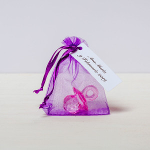 Saculetul din organza poate fi de culoare roz, lila, mov, alb sau ivory.