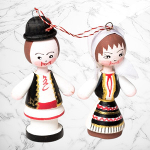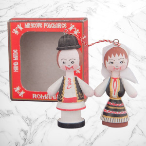 Apreciate pentru frumusetea portului popular, papusile din lemn sunt pictate manual.
