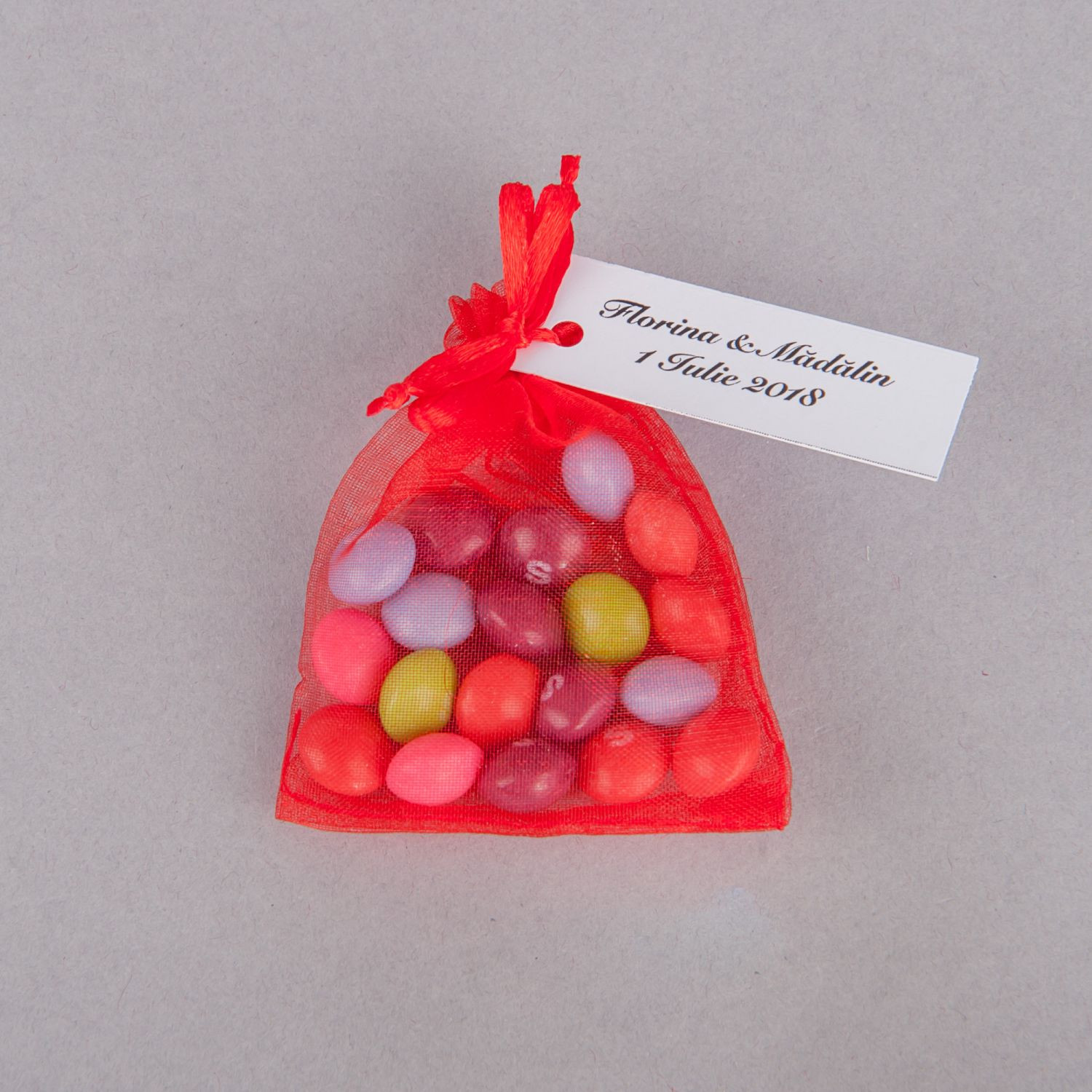 Pentru o nunta romantica, la care predomina culoarea pasiunii, foloseste saculeti de nunta rosii. Acestia simbolizeaza dragostea care i-a unit pe miri in sfanta casatorie.
