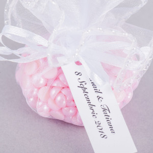 Acesti saculeti rotunzi se pot oferi invitatilor cu pietricele de diverse culori, margele, migdale sau arahide glazurate, dupa preferinte. Saculetii rotunzi sunt marturii de nunta apreciate atat de miri, cat si de invitati.