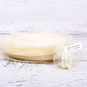 Marturiile botez saculeti ivory cu fir argintiu sunt o buna alegere pentru orice tip de nunta de la rustic la vintage. Aceste mici cadouri pentru invitati se ofera cu bomboane, arahide glazurate, margelute tio perla sau alte accesorii dragute.