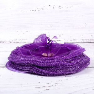 O data umpluti cu migdale sau margele, acestia se asigura in capat cu snur satinat de culoare mov.