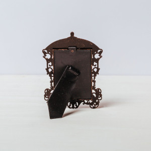 Rama foto caleasca este realizata din metal, iar aspectul vintage este dat de culoare si desgin. Spatele ramei, respectiv suportul de sprijin sunt din plastic.